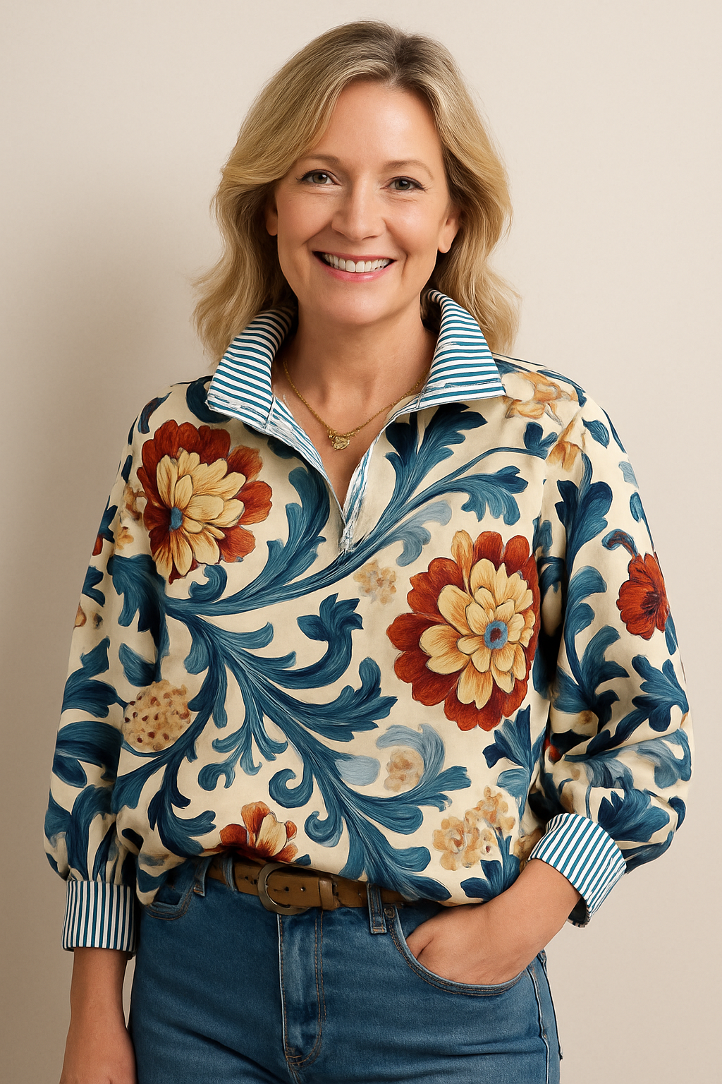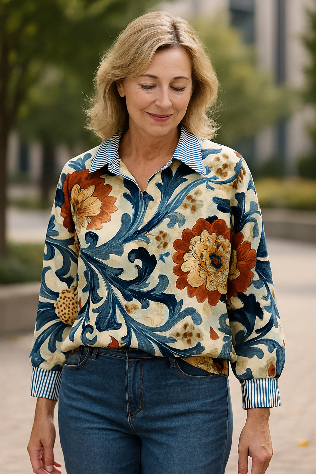 Chemise Florale Classique à Col Rayé